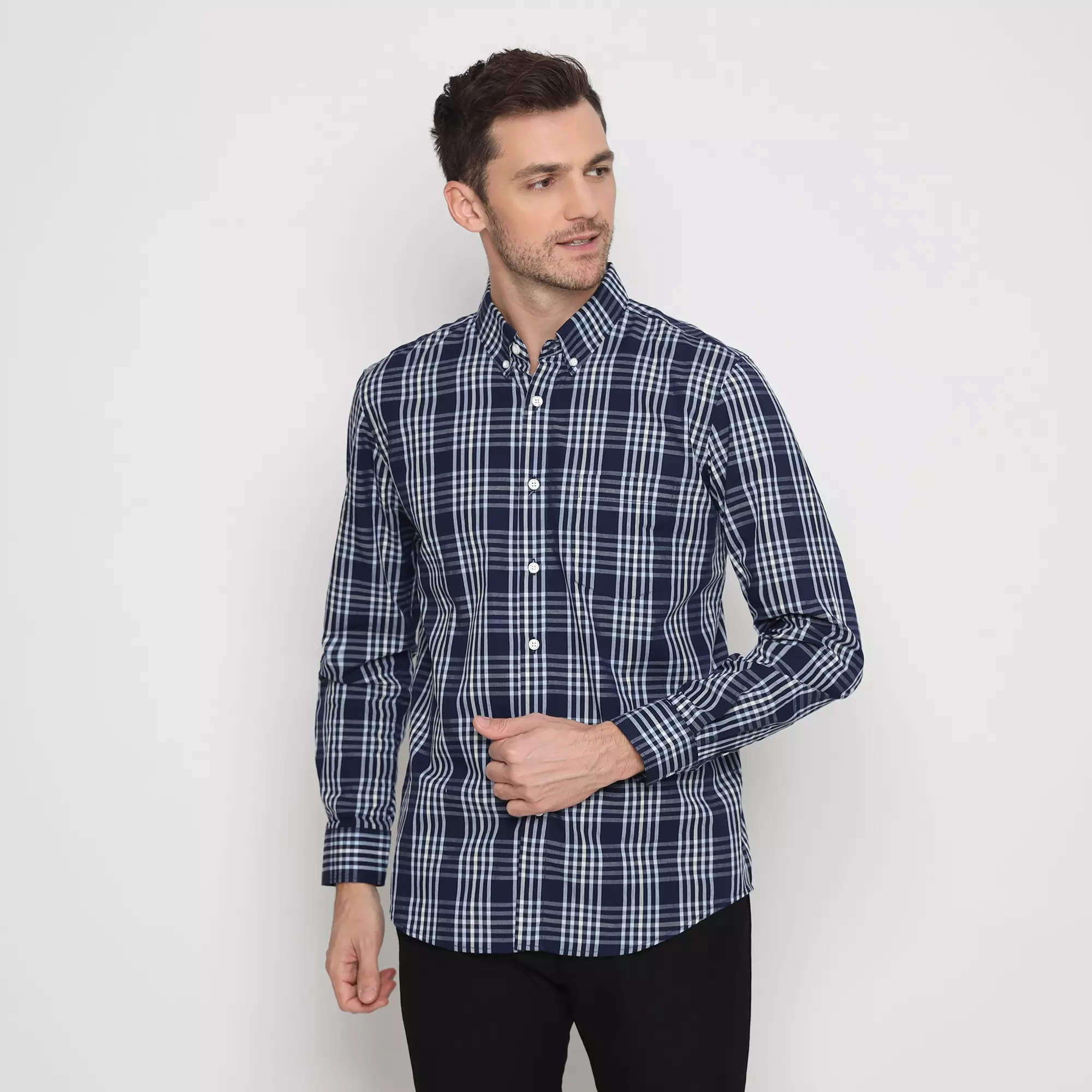 Platini Kemeja Lengan Panjang Katun Motif Kotak Navy 76461