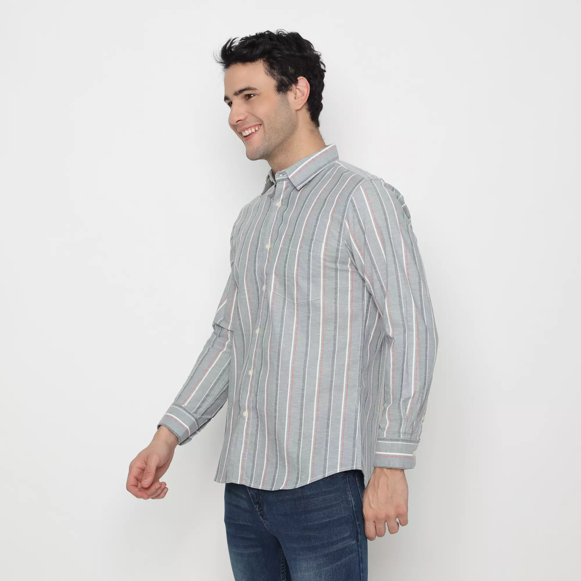 Platini Kemeja Lengan Panjang Katun Salur 76442 Abu