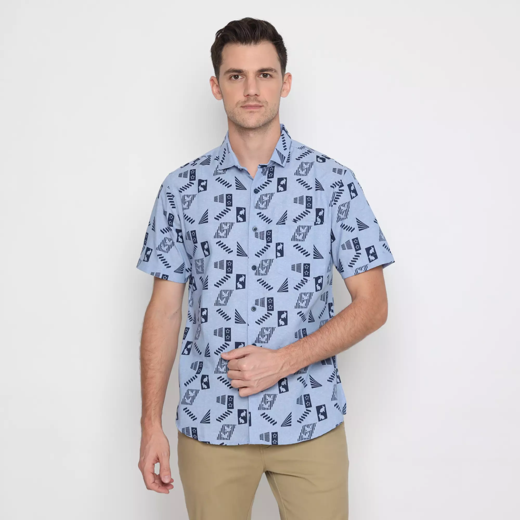 Platini Kemeja Motif Pria Lengan Pendek Katun Biru 132213