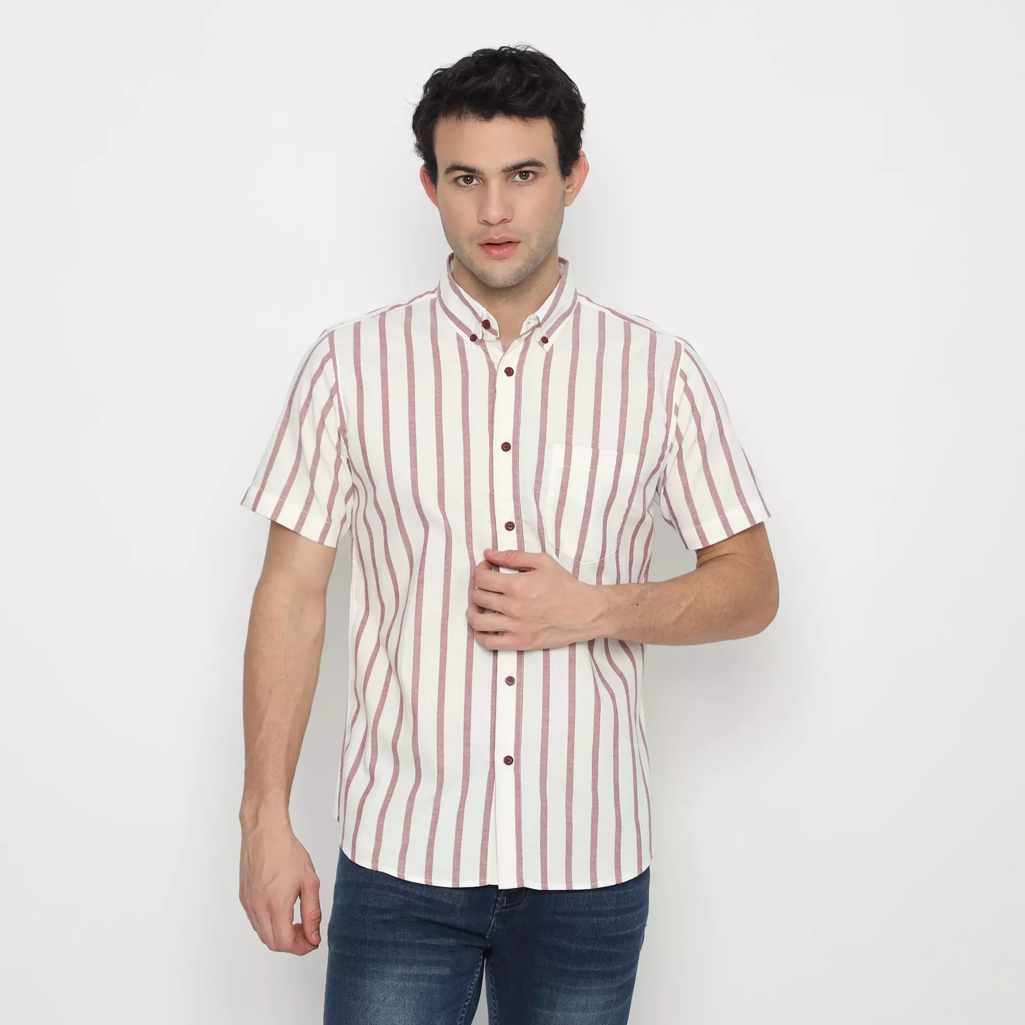 PlatiniPlatini Kemeja Motif Salur Pria Lengan Pendek Katun Oxford Maroon 73272499000.00149000.00