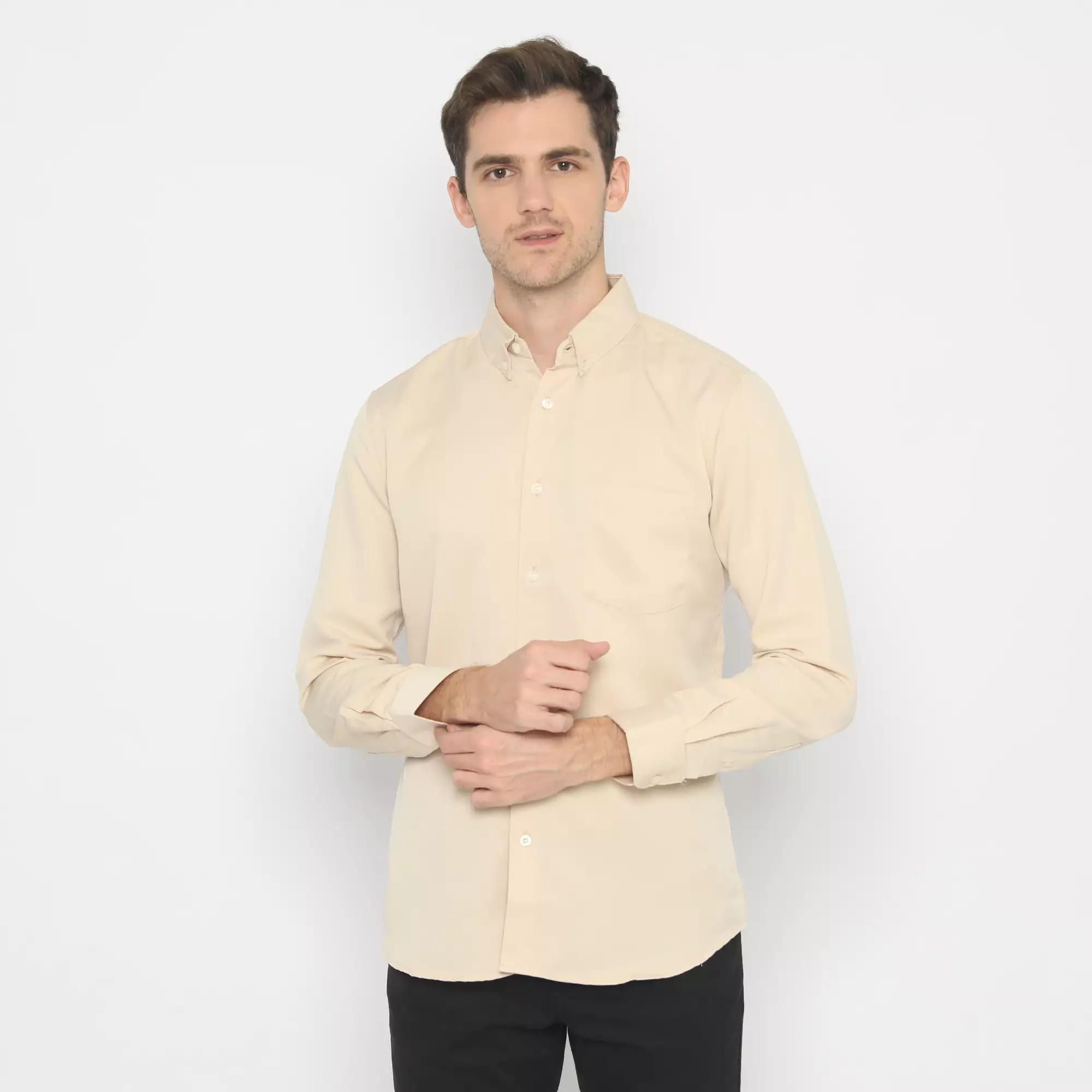 Platini Kemeja Polos Lengan Panjang Cream Polinosic 66118