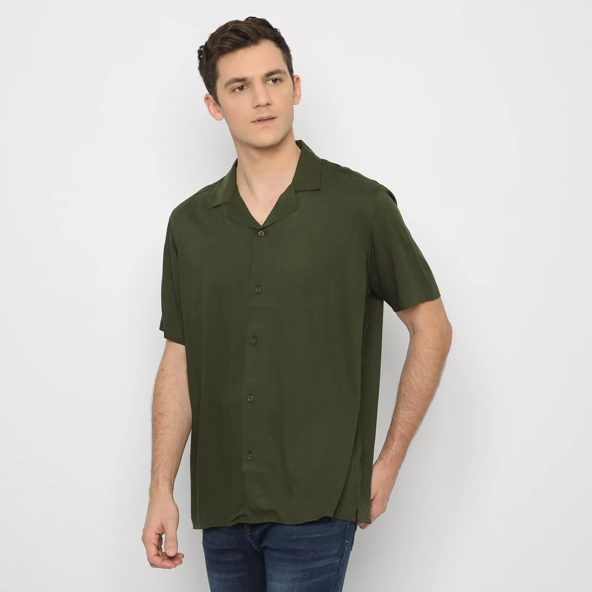 Platini Kemeja Polos Pria Kerah Hawai Katun Hijau Olive 73310