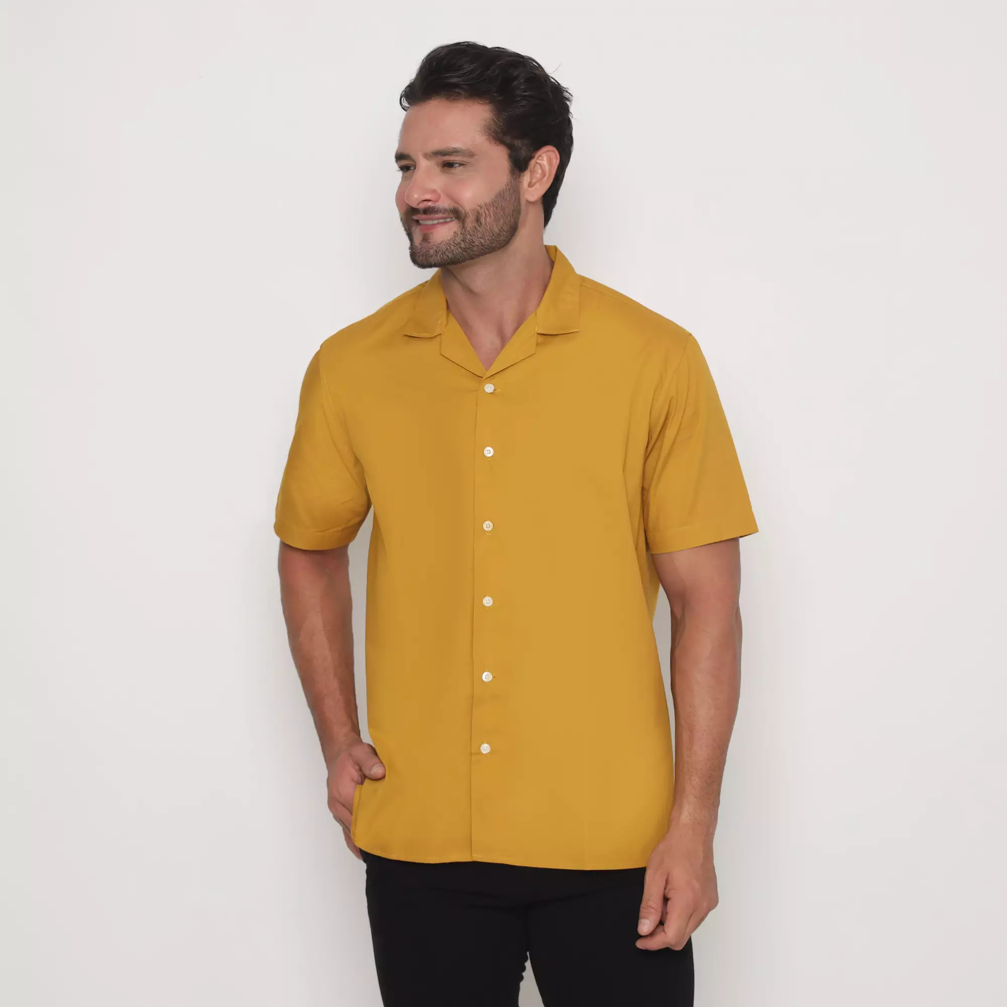 Platini Kemeja Polos Pria Lengan Pendek Katun Kuning Gading 73405