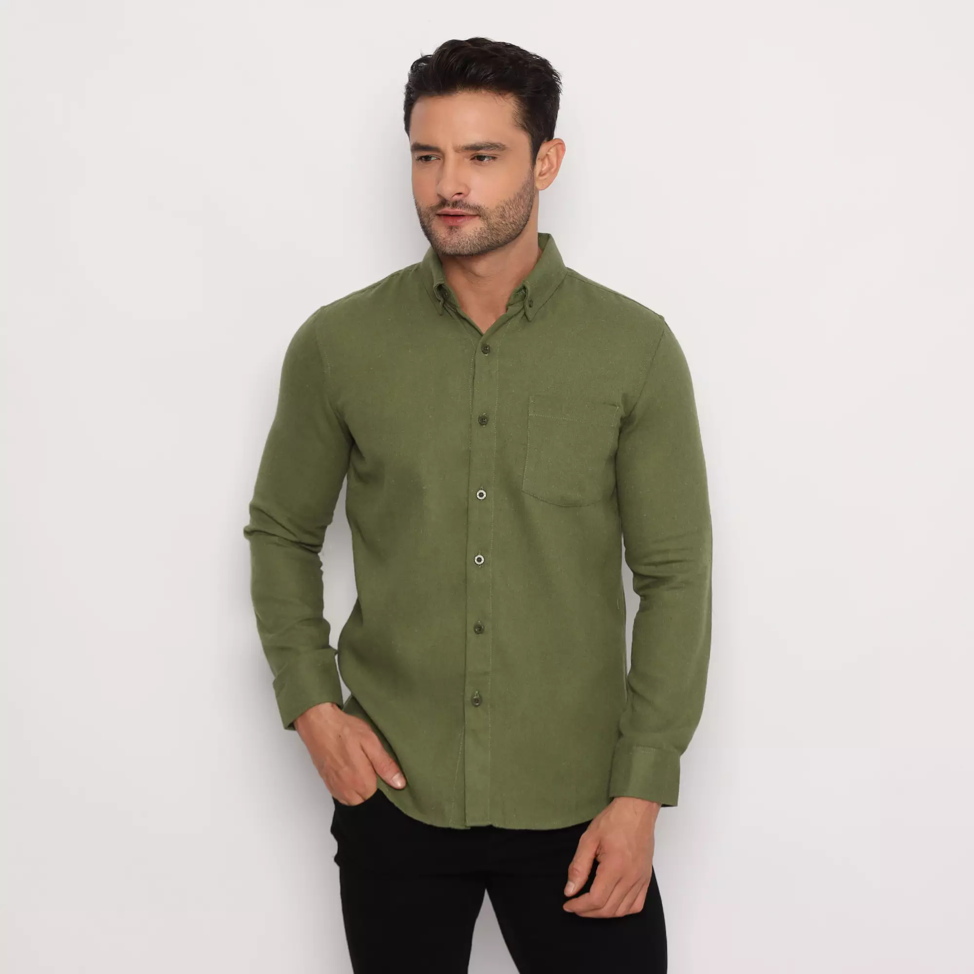 Platini Kemeja Pria Flanel Polos Lengan Panjang Hijau 76343