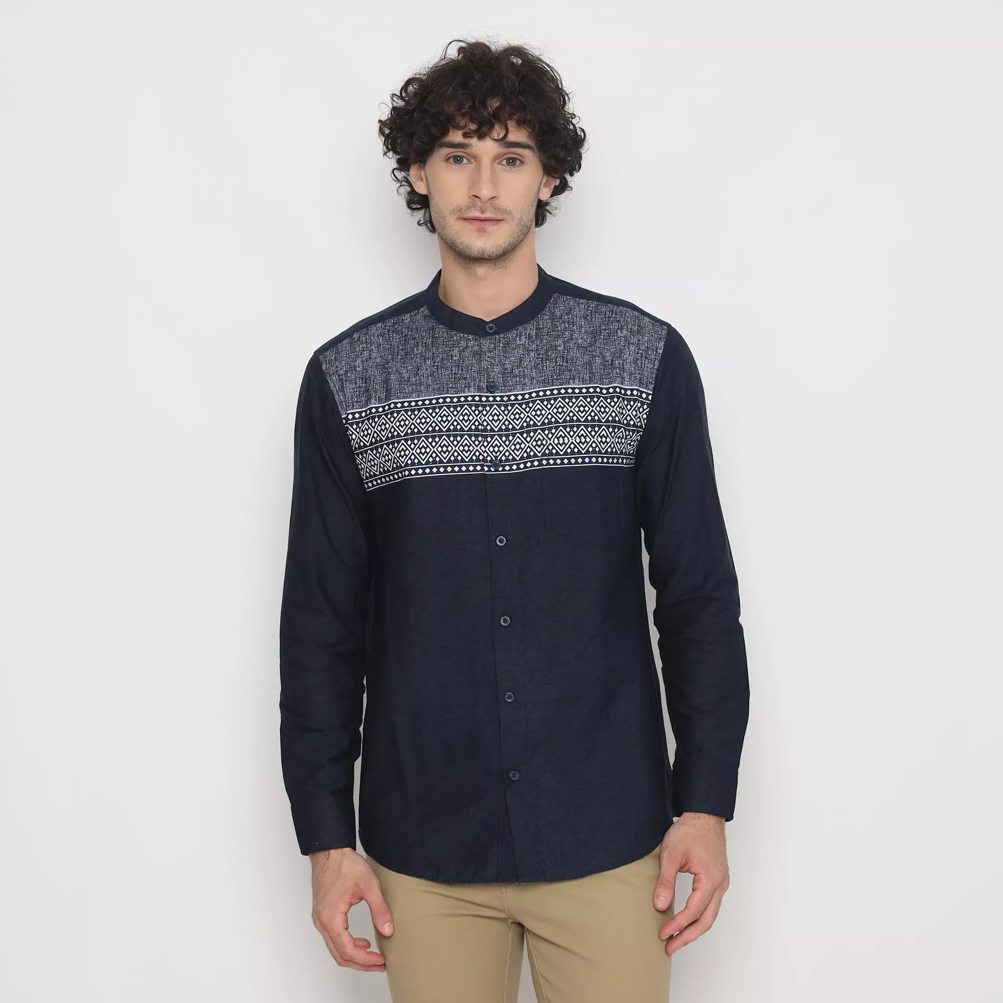 Platini Kemeja Pria Koko Shanghai Lengan Panjang Katun Navy 961286