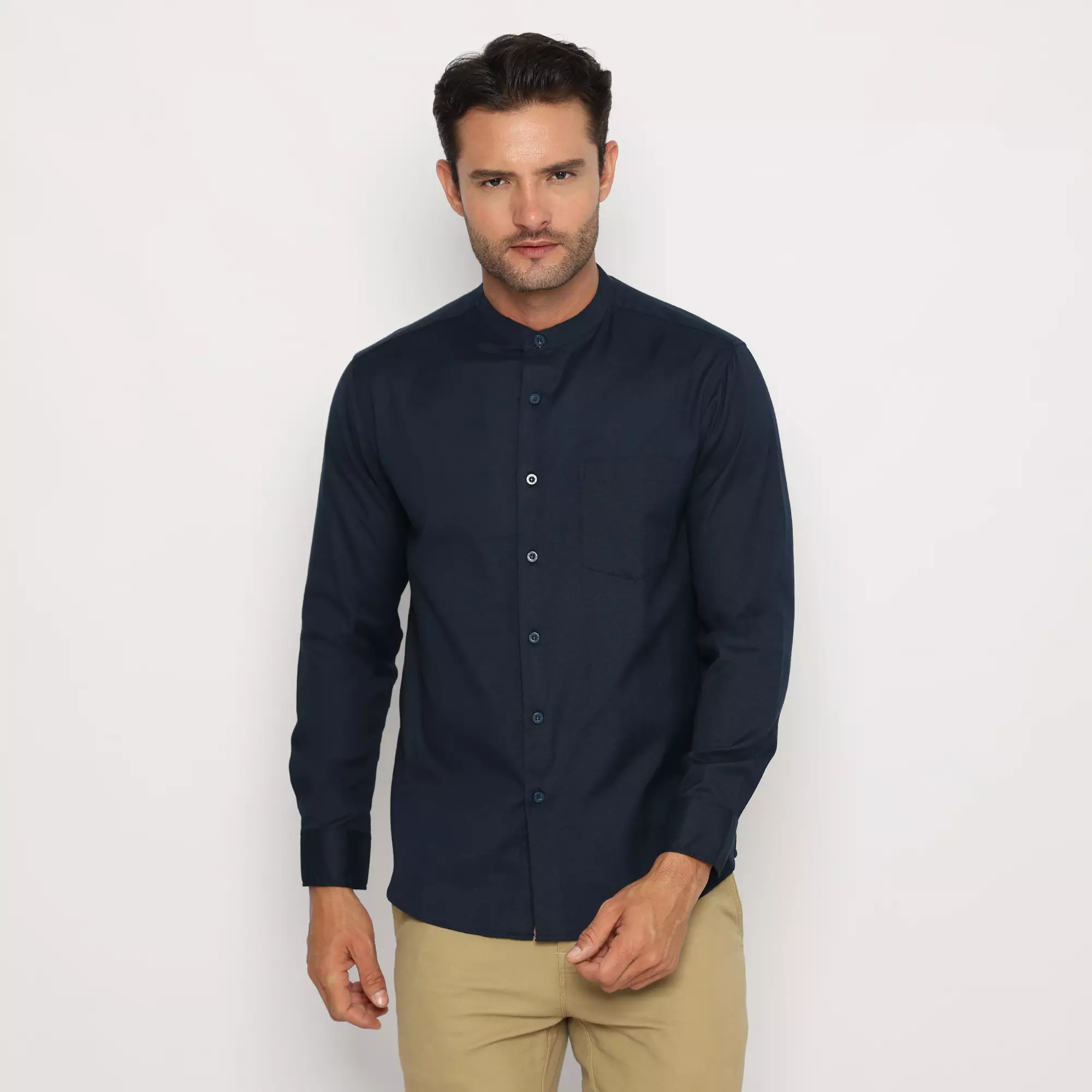 Platini Kemeja Pria Koko Shanghai Lengan Panjang Katun Oxford Navy 22030