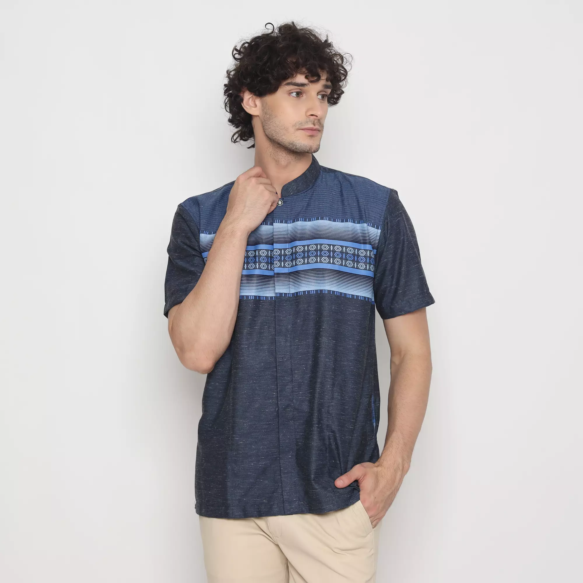 Platini Kemeja Pria Koko Shanghai Lengan Pendek Katun Navy 931282
