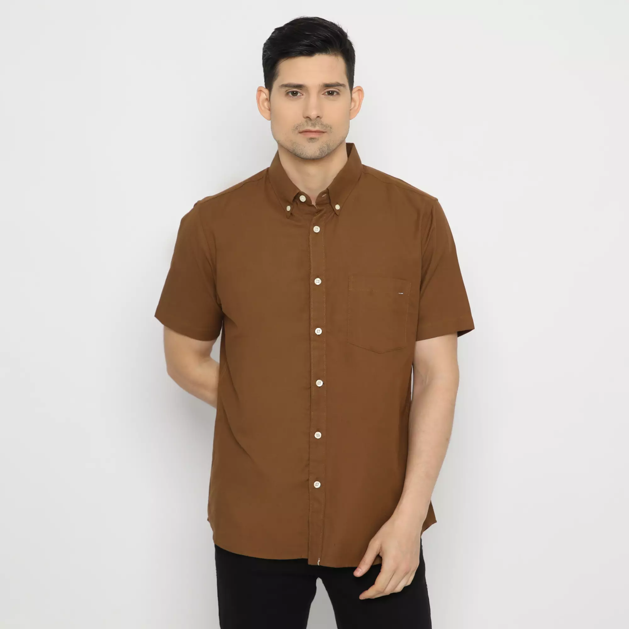 Platini Kemeja Pria Lengan Pendek Basic Katun Oxford Coklat 63217