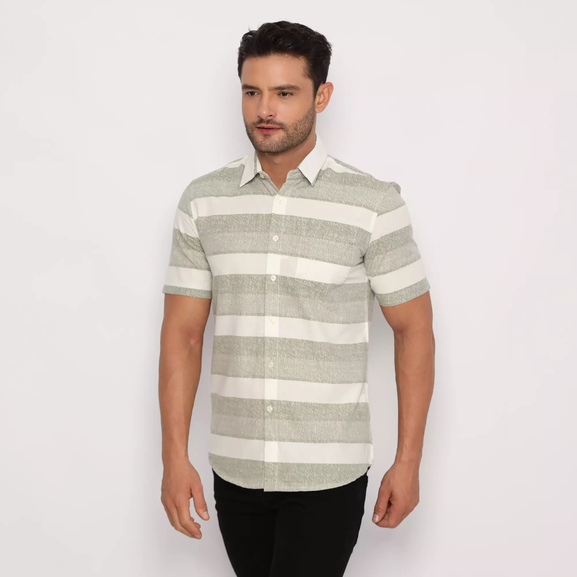 Platini Kemeja Pria Lengan Pendek Katun Oxford Hijau 73336