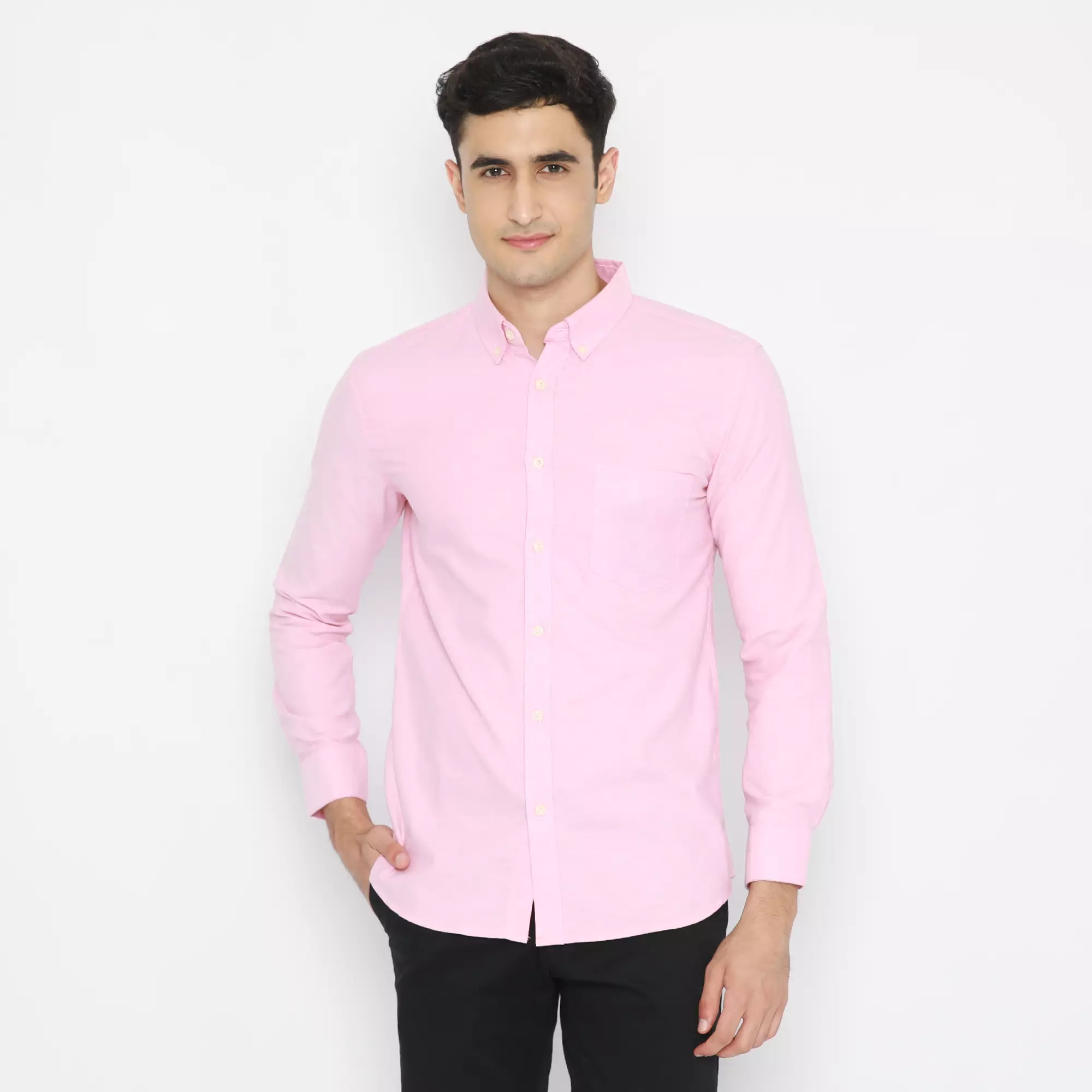 Platini Kemeja Pria Polos Lengan Panjang Katun Oxford Pink 66204