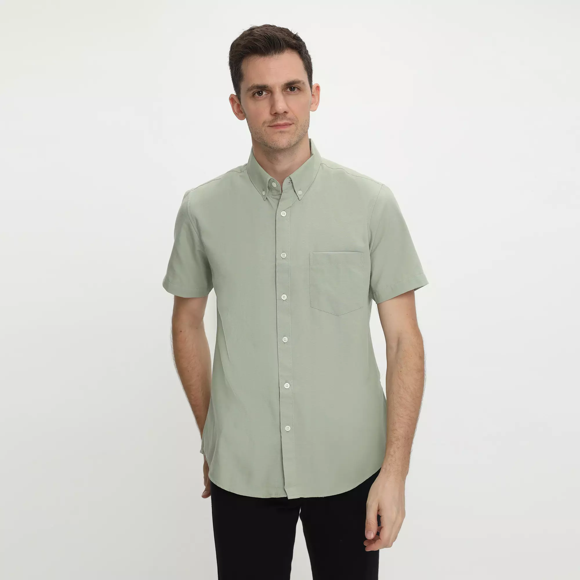 Platini Kemeja Pria Polos Lengan Pendek Katun Oxford Sage Green 1069.52