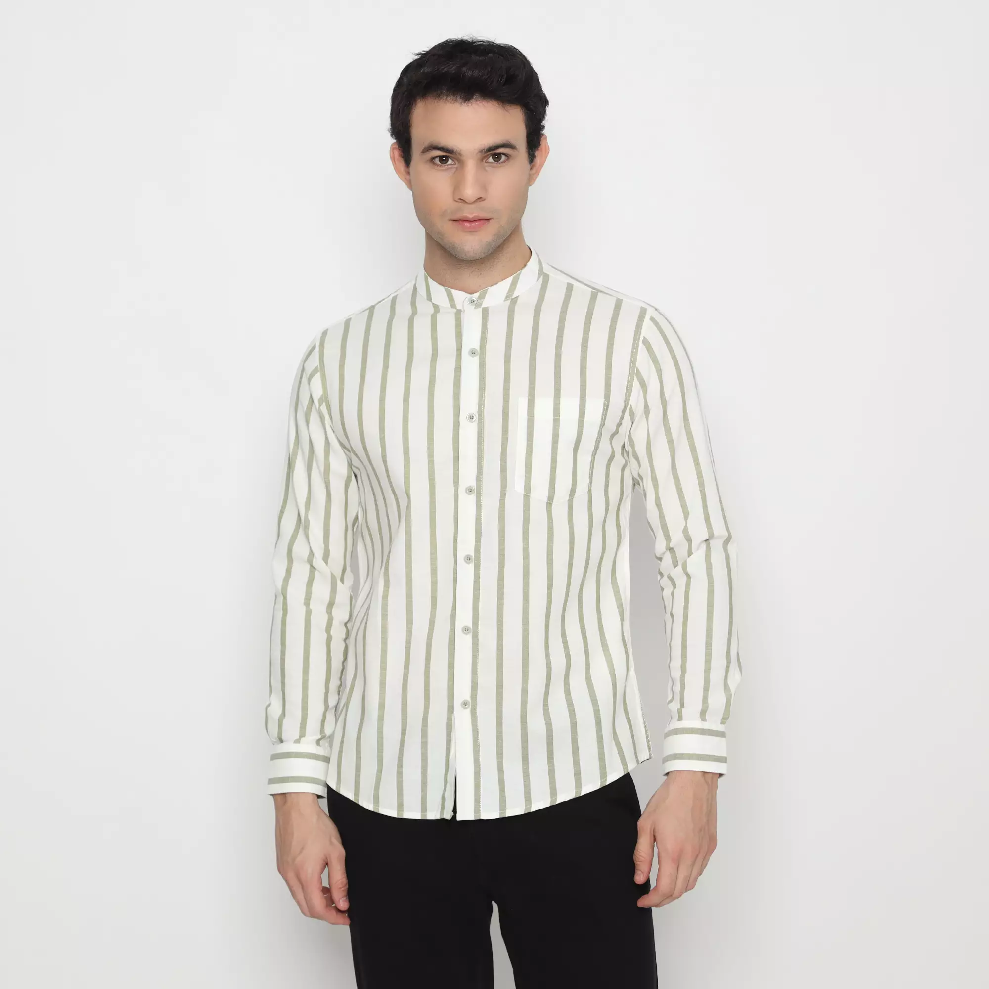 Platini Kemeja Shanghai Salur Pria Lengan Panjang Katun Hijau 961127