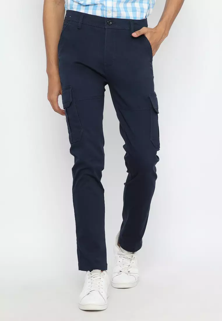 POLICE Celana Cargo Panjang Biru Tua Slim Fit Pria