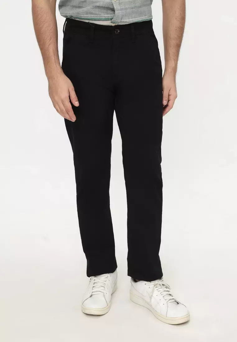 POLICE Celana Chino Panjang Black Cotton Premium Stretch Regular Fit Pria