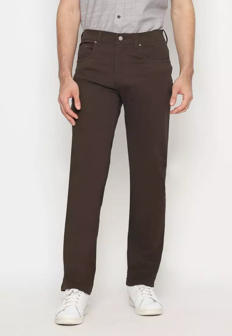POLICE Celana Chino Panjang V Pocket Dark Olive Regular Fit Cotton Premium Pria
