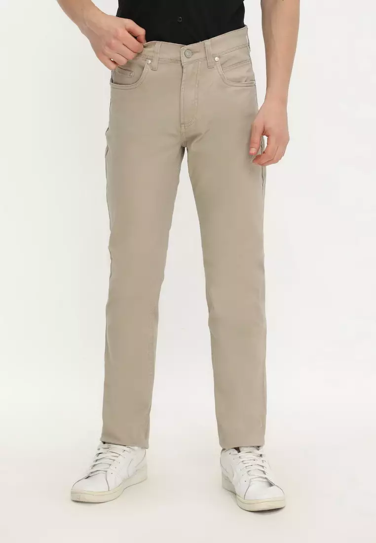 POLICE Celana Chino Panjang V Pocket Lt.Khaky Cotton Premium Slim Fit Pria
