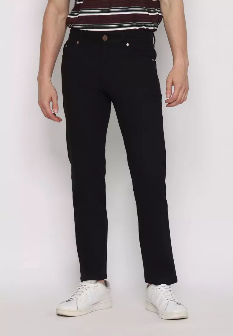POLICE Celana Denim Stretch Panjang V Pocket Hitam Regular Fit Pria