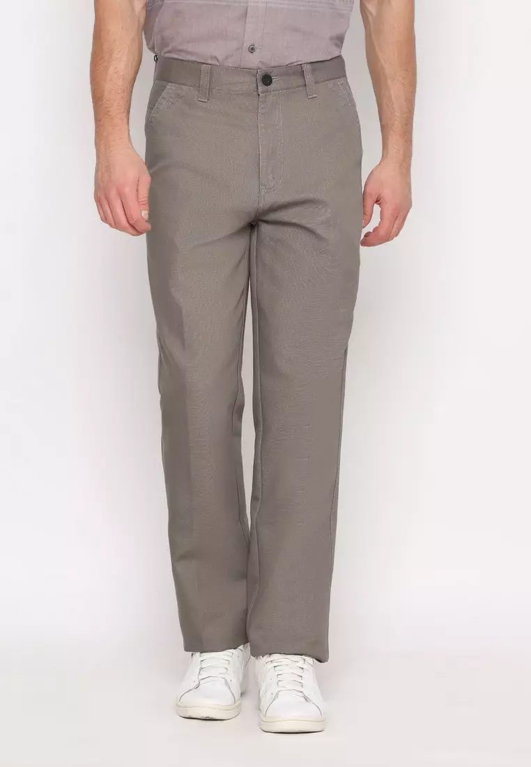 POLICE Celana Panjang Semi Formal Corak Katun Abu Pria