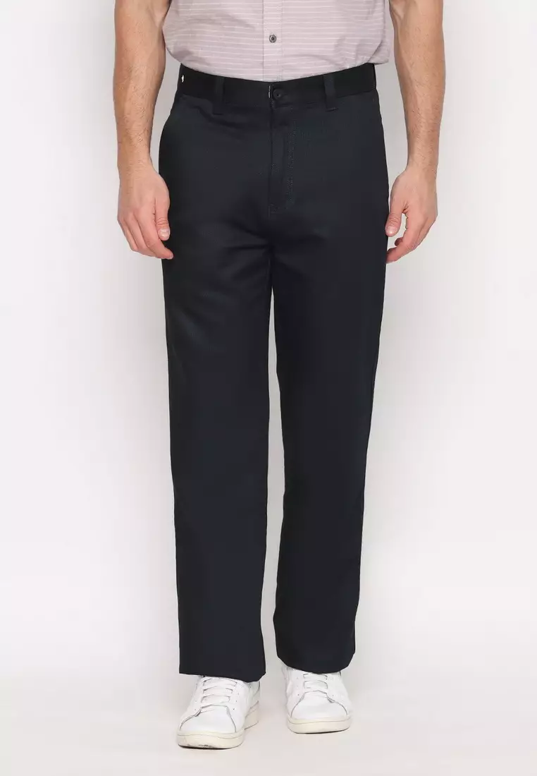 POLICE Celana Panjang Semi Formal Corak Katun Biru Tua Pria