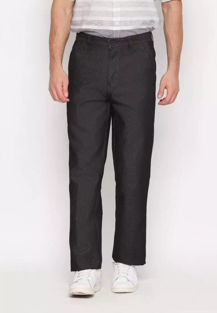 POLICE Celana Panjang Semi Formal Corak Katun Hitam Pria