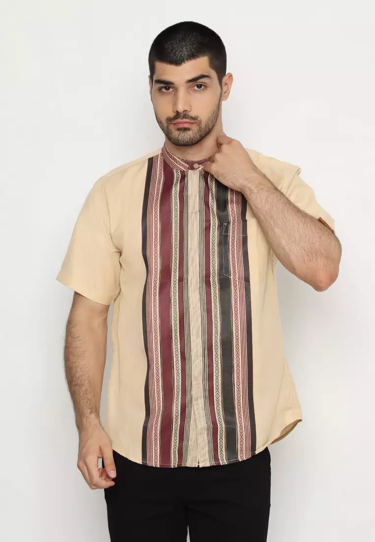 POLICE Kemeja Koko Border Cream Regular Fit Pria