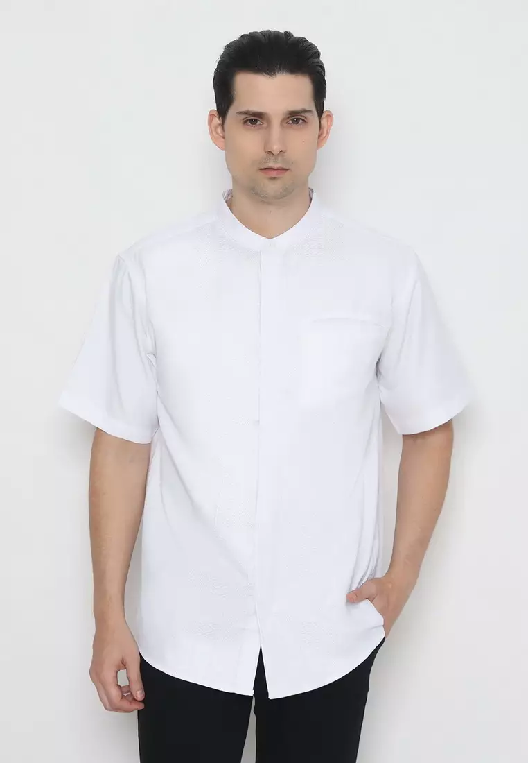 POLICE Kemeja Koko Border Printing Putih Regular Fit Pria