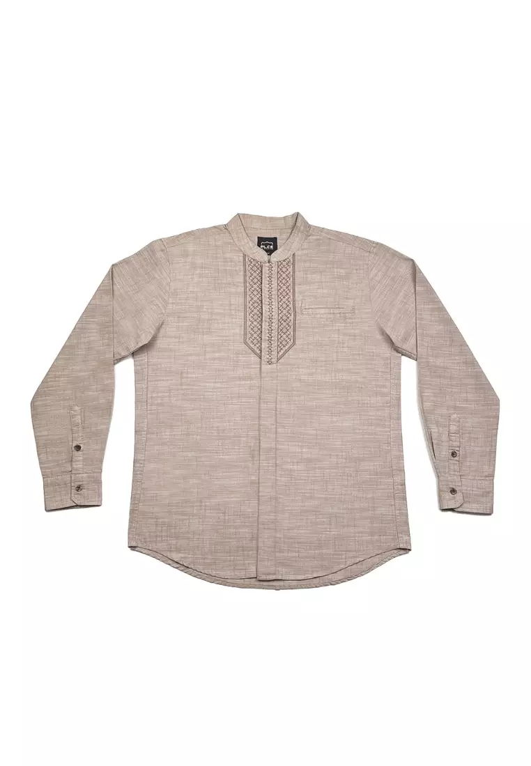POLICE Kemeja Koko Bordir Cotton Slub Regular Fit Lengan Panjang Pria