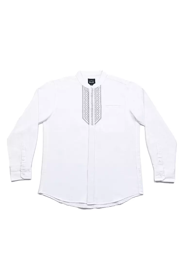POLICE Kemeja Koko Bordir Cotton Slub Regular Fit Lengan Panjang Pria