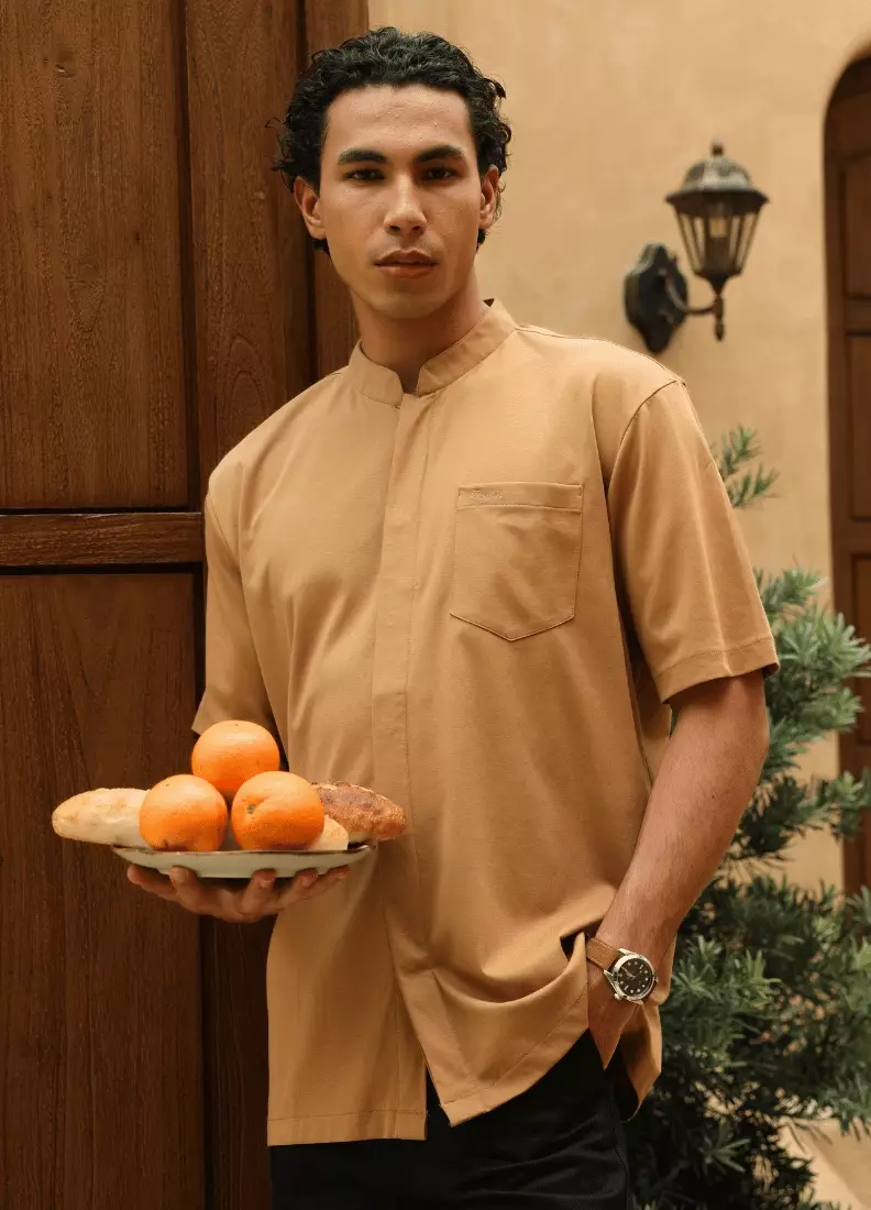 POLICE Kemeja Koko Polos Spandex Slub Premium Regular Fit Pria