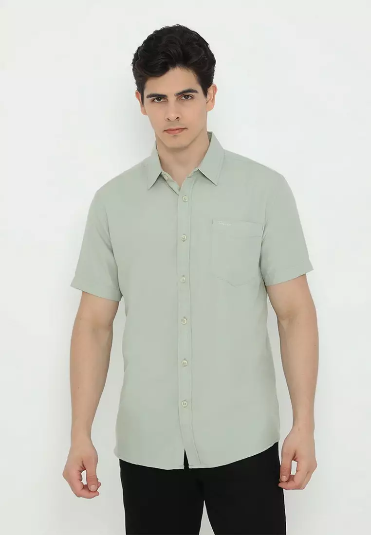 POLICE Kemeja Polos Basic Cotton Soft Regular Fit Lengan Pendek Pria