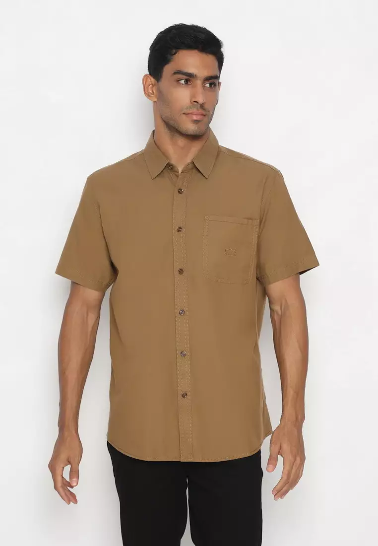 POLICE Kemeja Polos Cotton Coklat Regular Fit Pria
