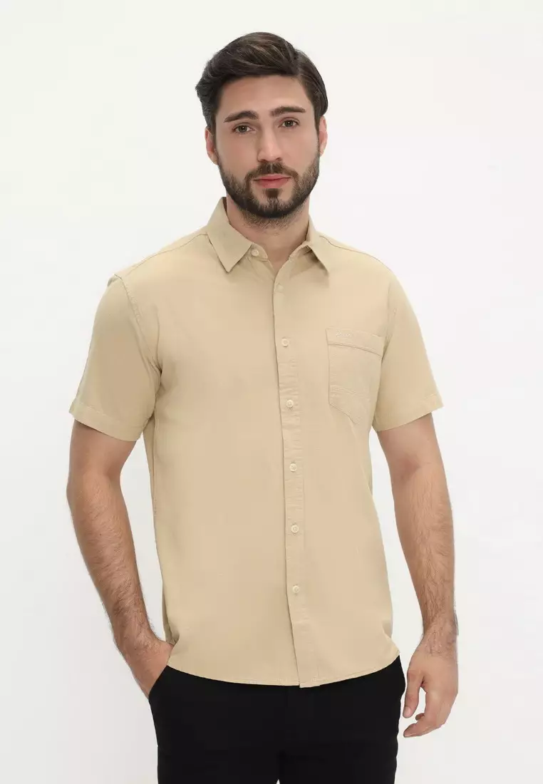 POLICE Kemeja Polos Cotton Cream Regular Fit Pria