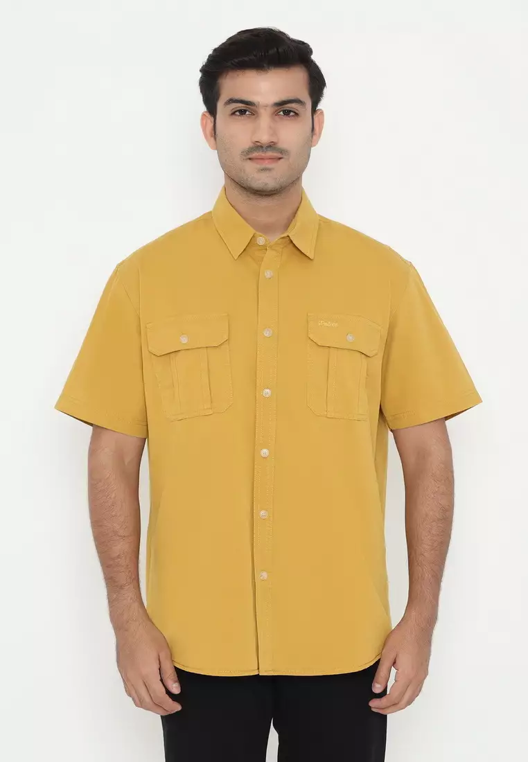 POLICE Kemeja Polos Cotton Kantong Dua Regular Fit Pria