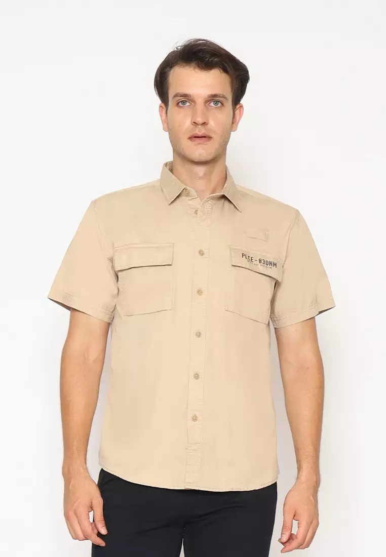 POLICE Kemeja Polos Cotton Twill Kantong Dua Mocca Regular Fit Pria