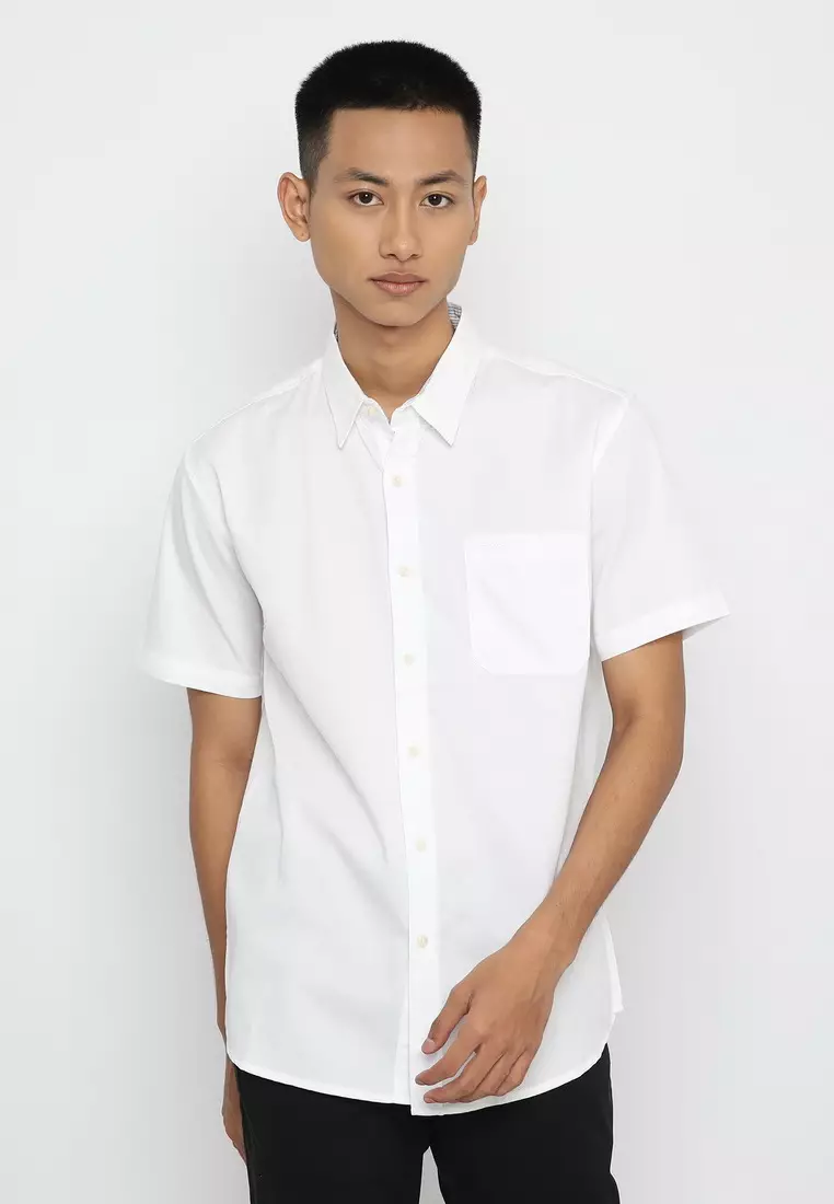 POLICE Kemeja Polos Cotton Twill Putih Regular Fit Pria