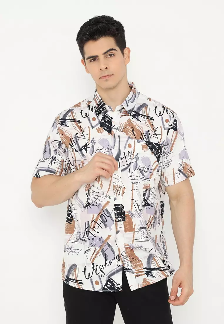 POLICE Kemeja Printing Cotton Tencel Regular Fit Pria