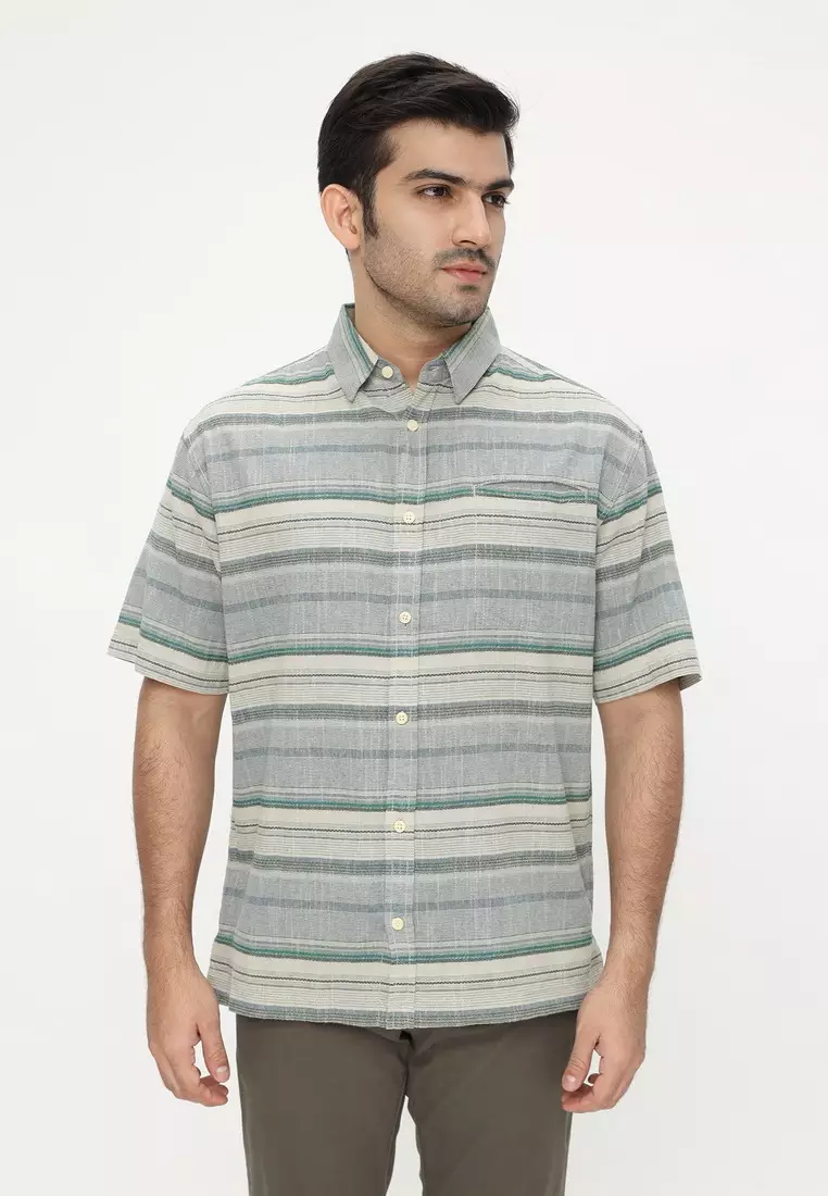 POLICE Kemeja Salur Printing Abu Biru Regular Fit Pria