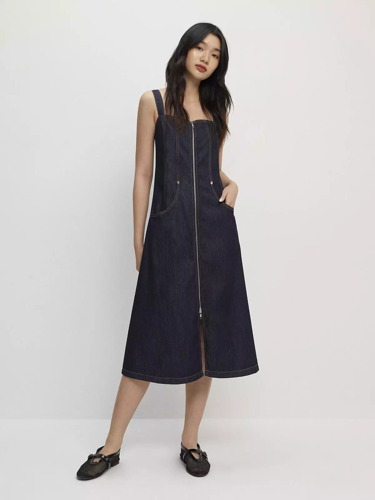 Pomelo FashionFront Zipper Denim Midi Dress - Dark Blue899000.00449000.00