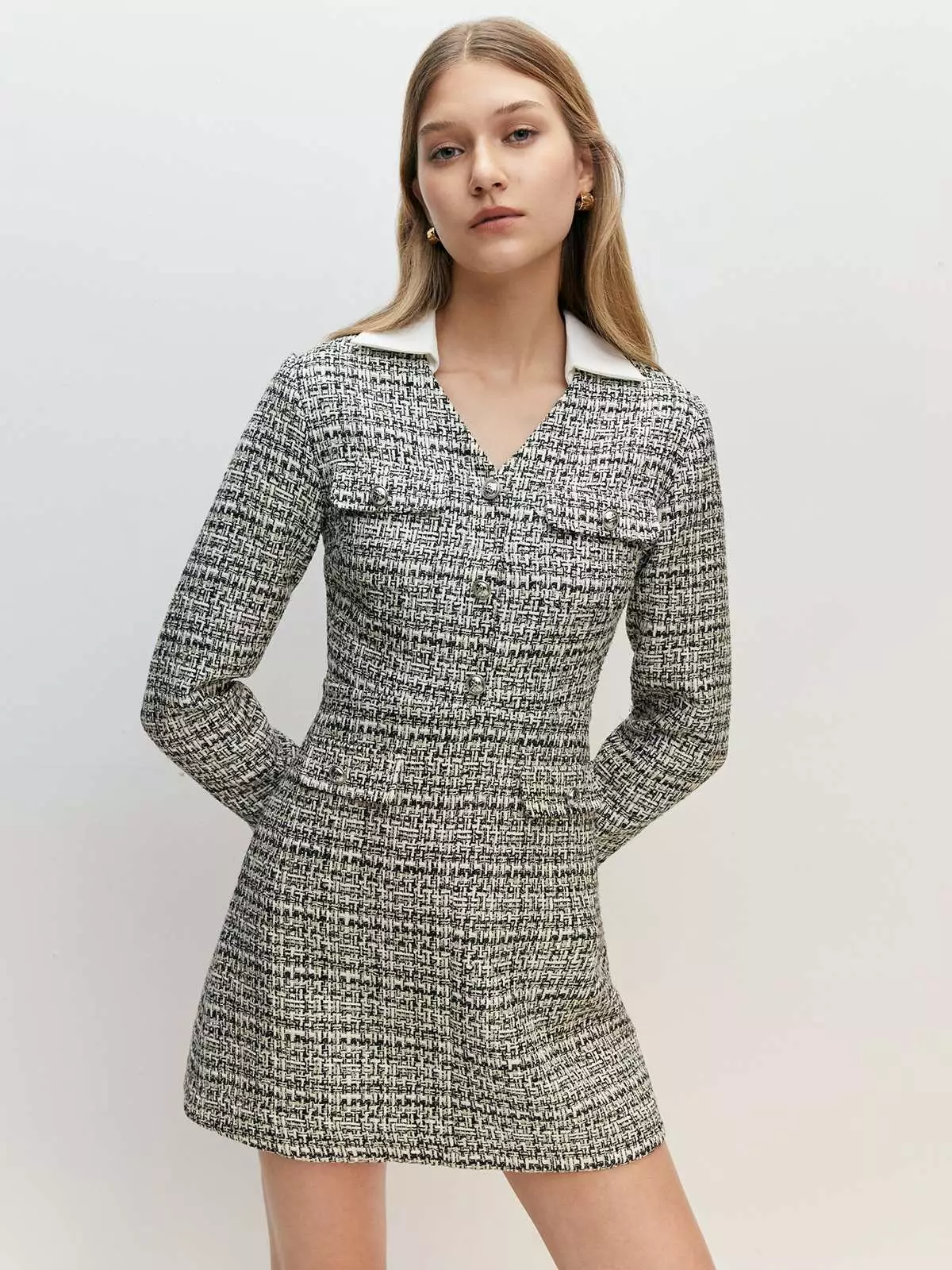 Pomelo FashionLong Sleeve A-Line Tweed Mini Dress - Black999000.00499000.00