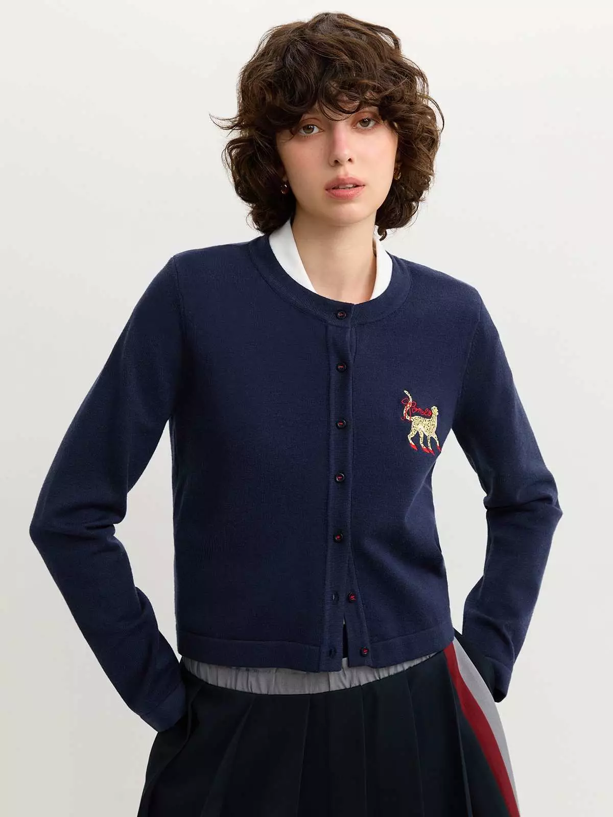 Pomelo - Cardigan Wanita - Embroidered Cardigan - Navy