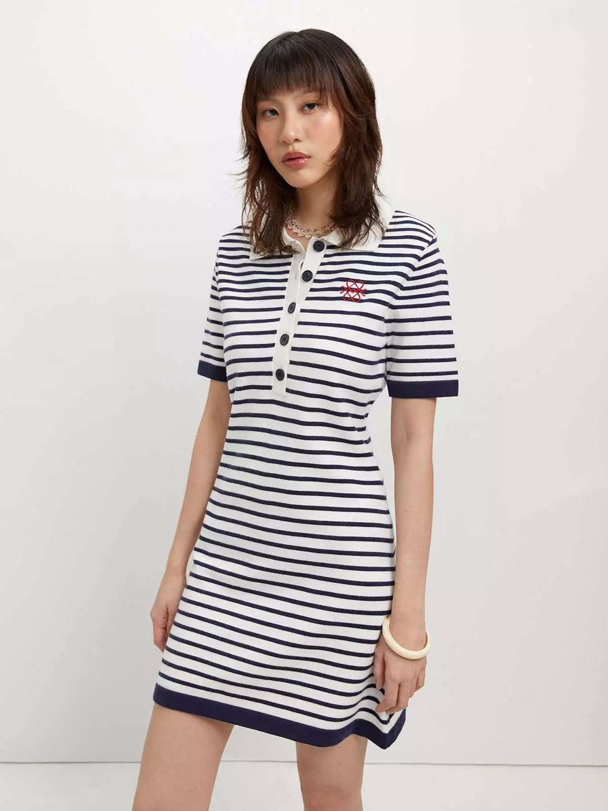 Stripe Polo Dress - Navy