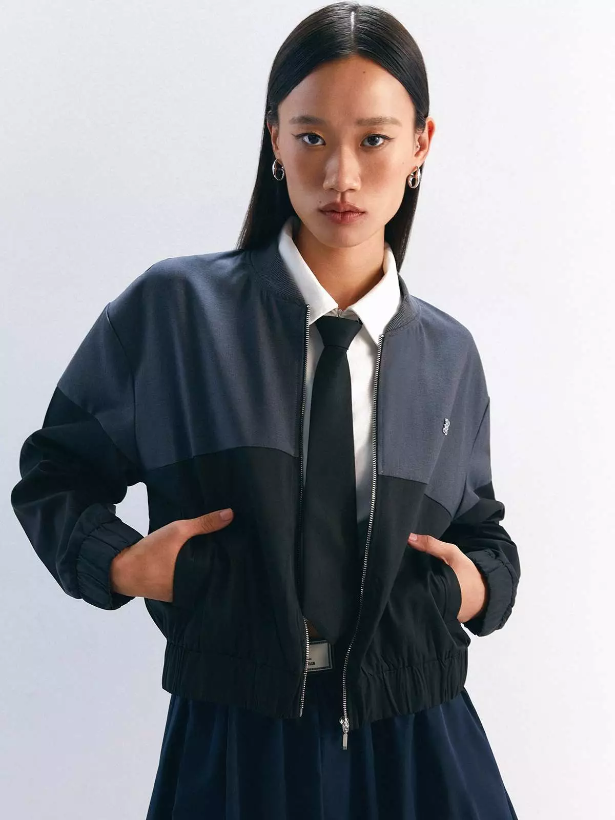 Pomelo FashionTwo Tone Zipper Jacket - Dark Grey849000.00449000.00