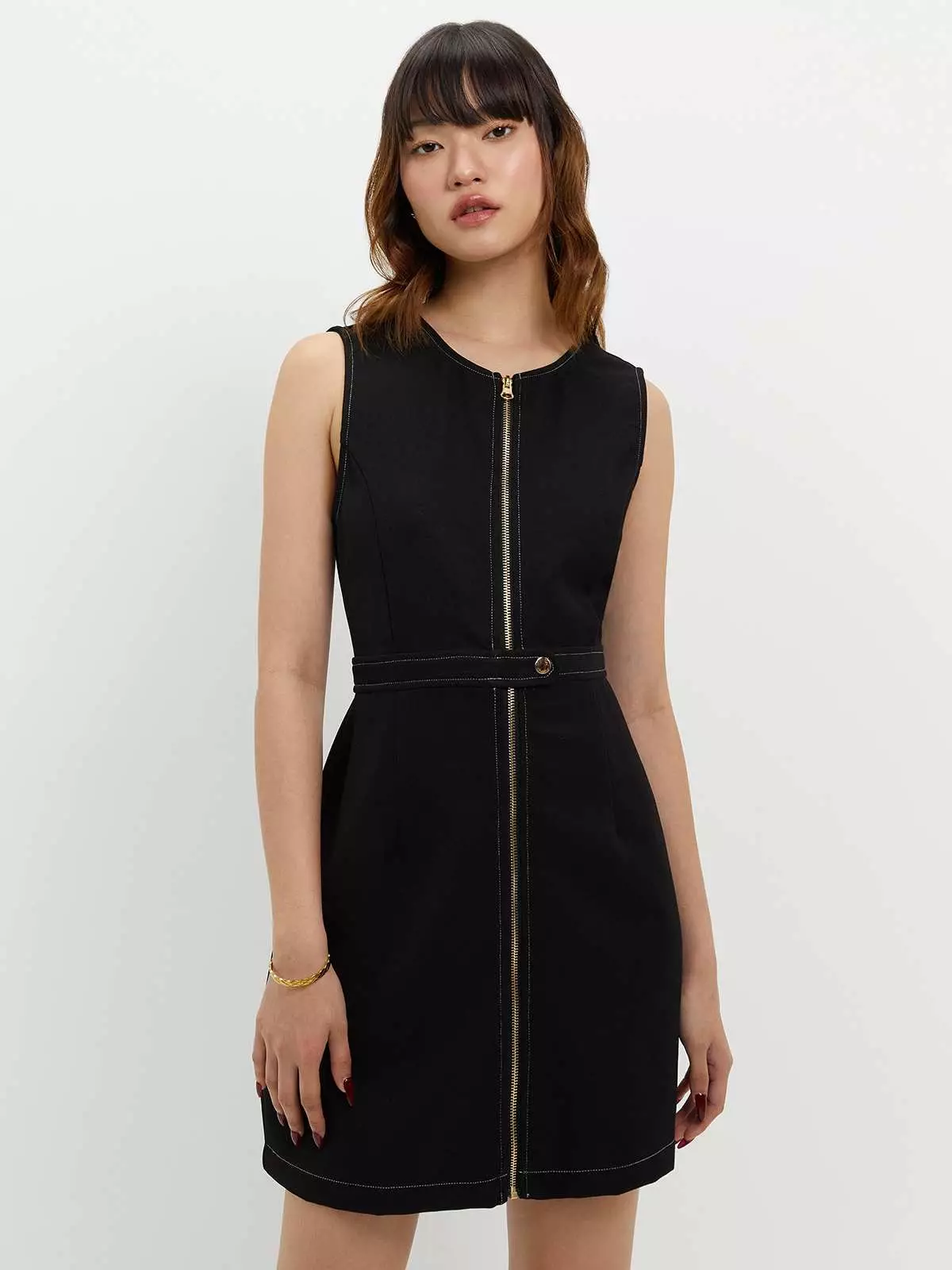 Zippered Contrast Stitch Dress - Black