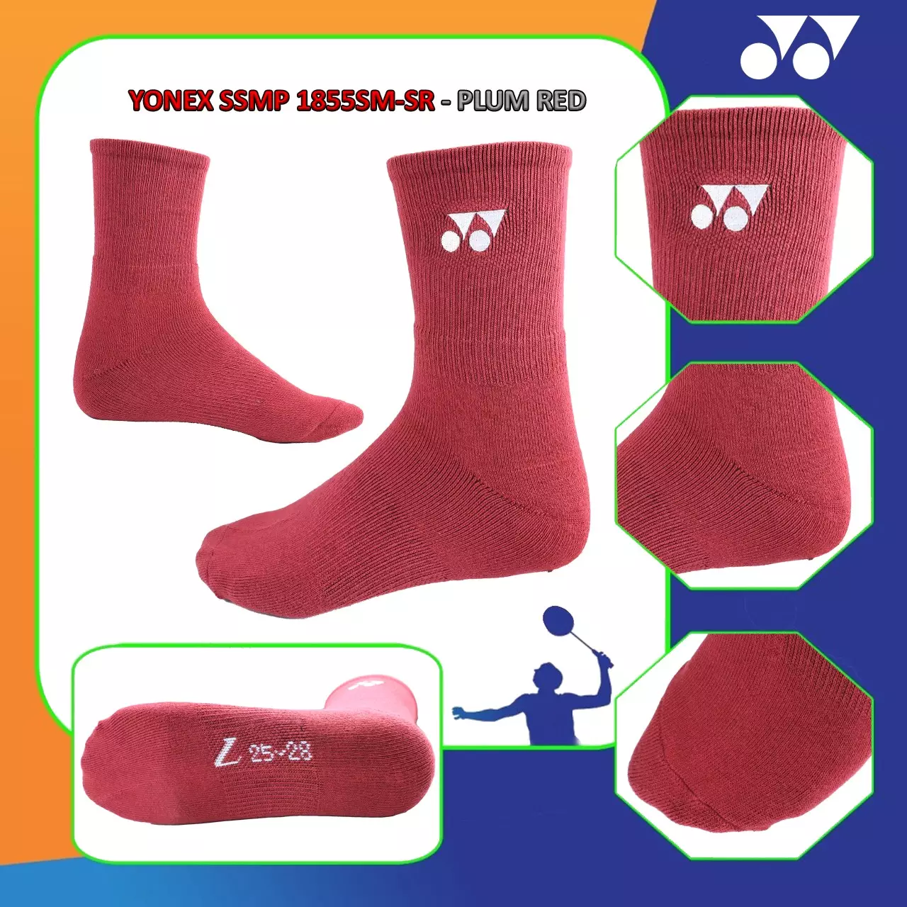 PROCHAMPKAOS KAKI SOCK YONEX ORIGINAL SSMP 1855SM/1855 SM FOR BADMINTON PLAYER-PLUM RED55000.00