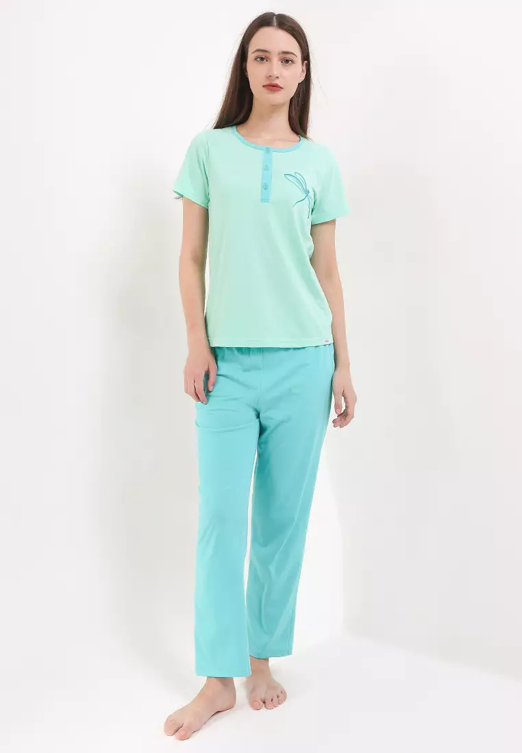 Pyjama Pijama Baju Tidur  Short Sleeve Long Pants Sleepwear