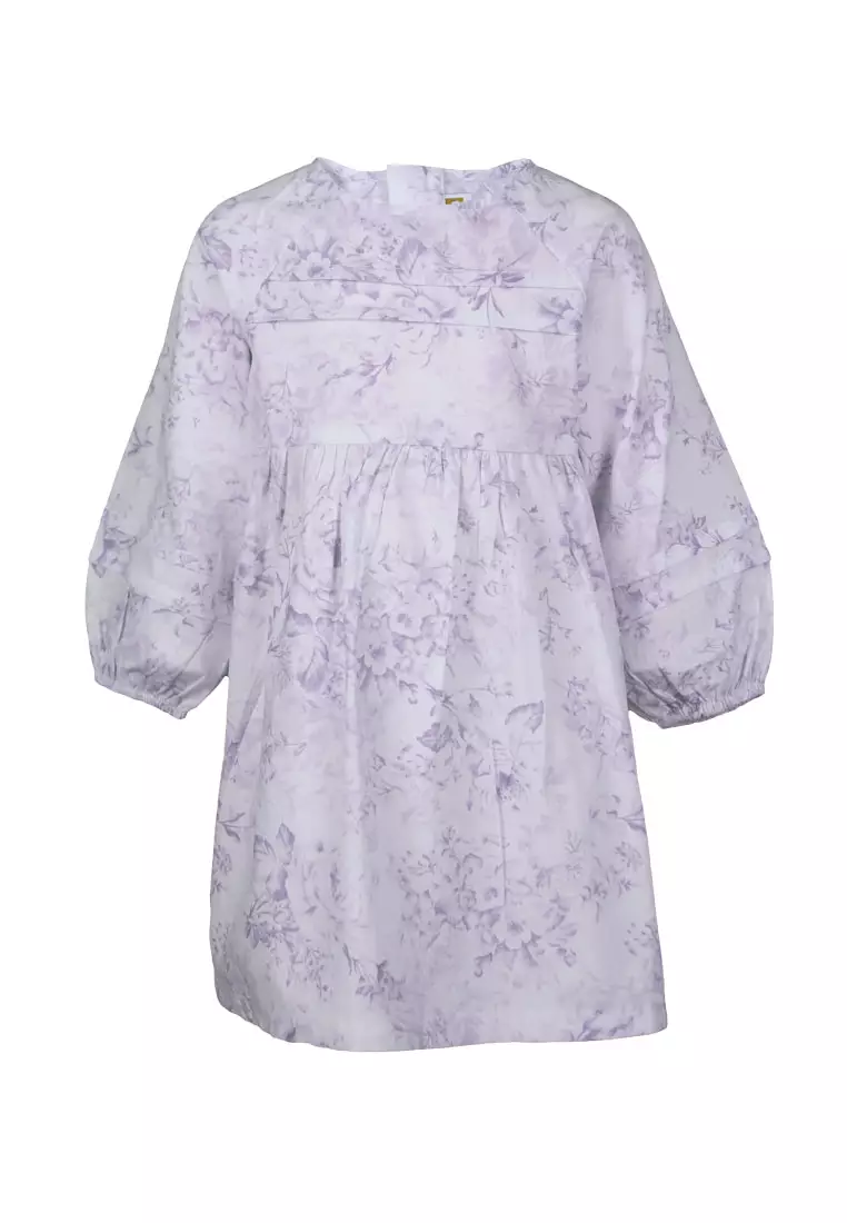 Qna Girl Sunshinered Midi Dress Anak Ungu Muda Motif Bunga