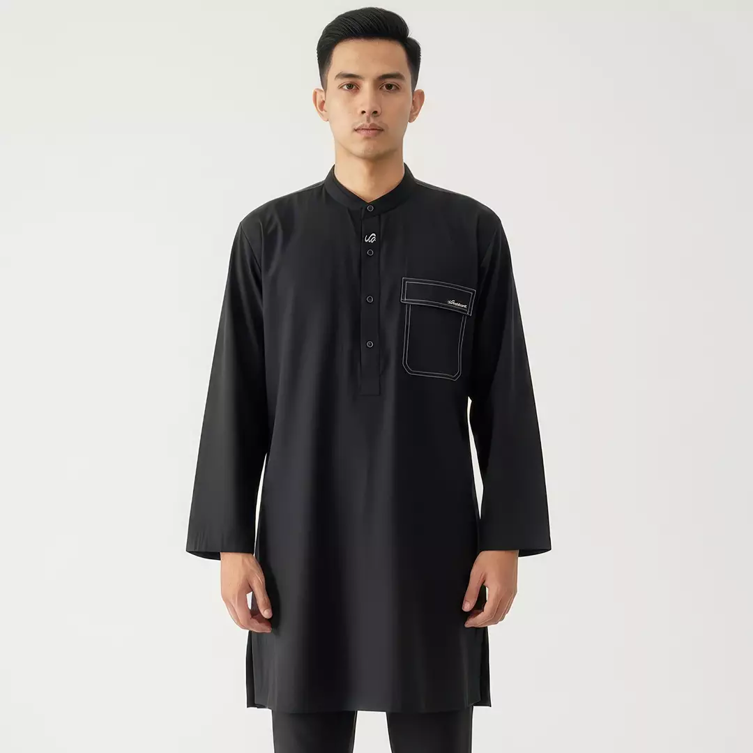 Rabbani - Jubah Koko Muslim Pria Lengan Panjang Dewasa Pandya Exclusive - Jet Black