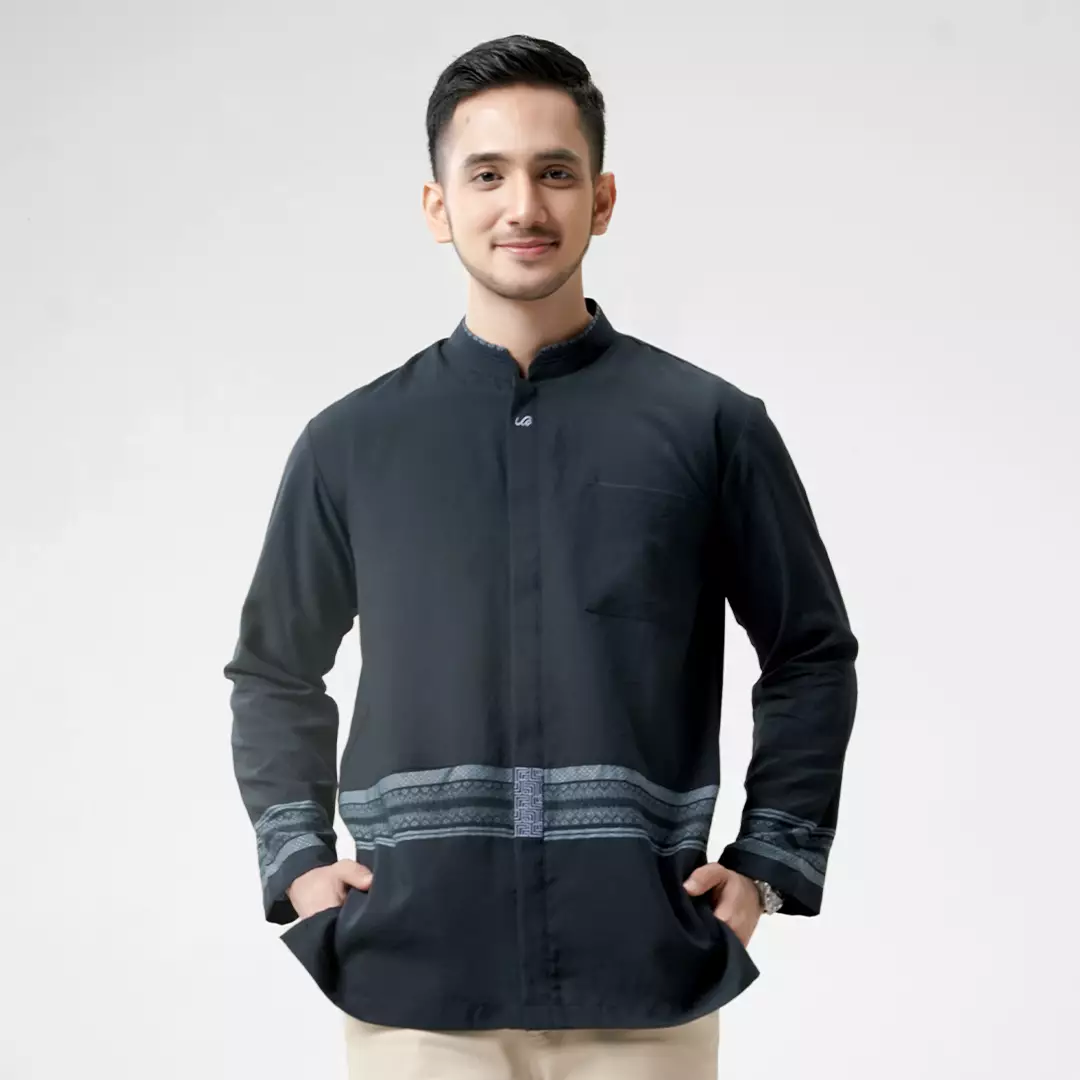 Rabbani - Kemeja Koko Muslim Pria Lengan Panjang Dewasa Faheem Exclusive - Blue Black