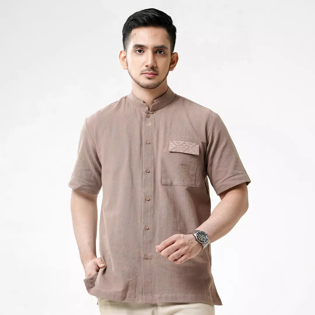 Rabbani - Kemeja Koko Muslim Pria Lengan Pendek Dewasa Kemko Madhava Exclusive - Coklat