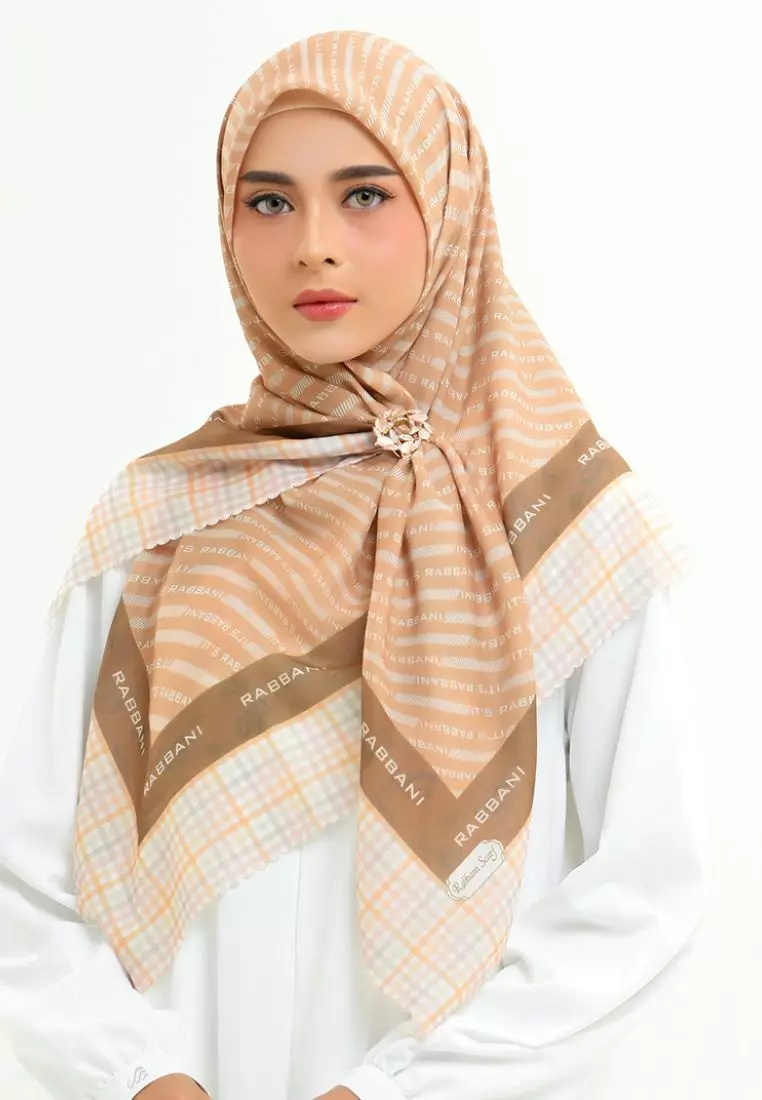 Rabbani - Kerudung Segi Empat Motif Tetra Biani H0 - Brownis